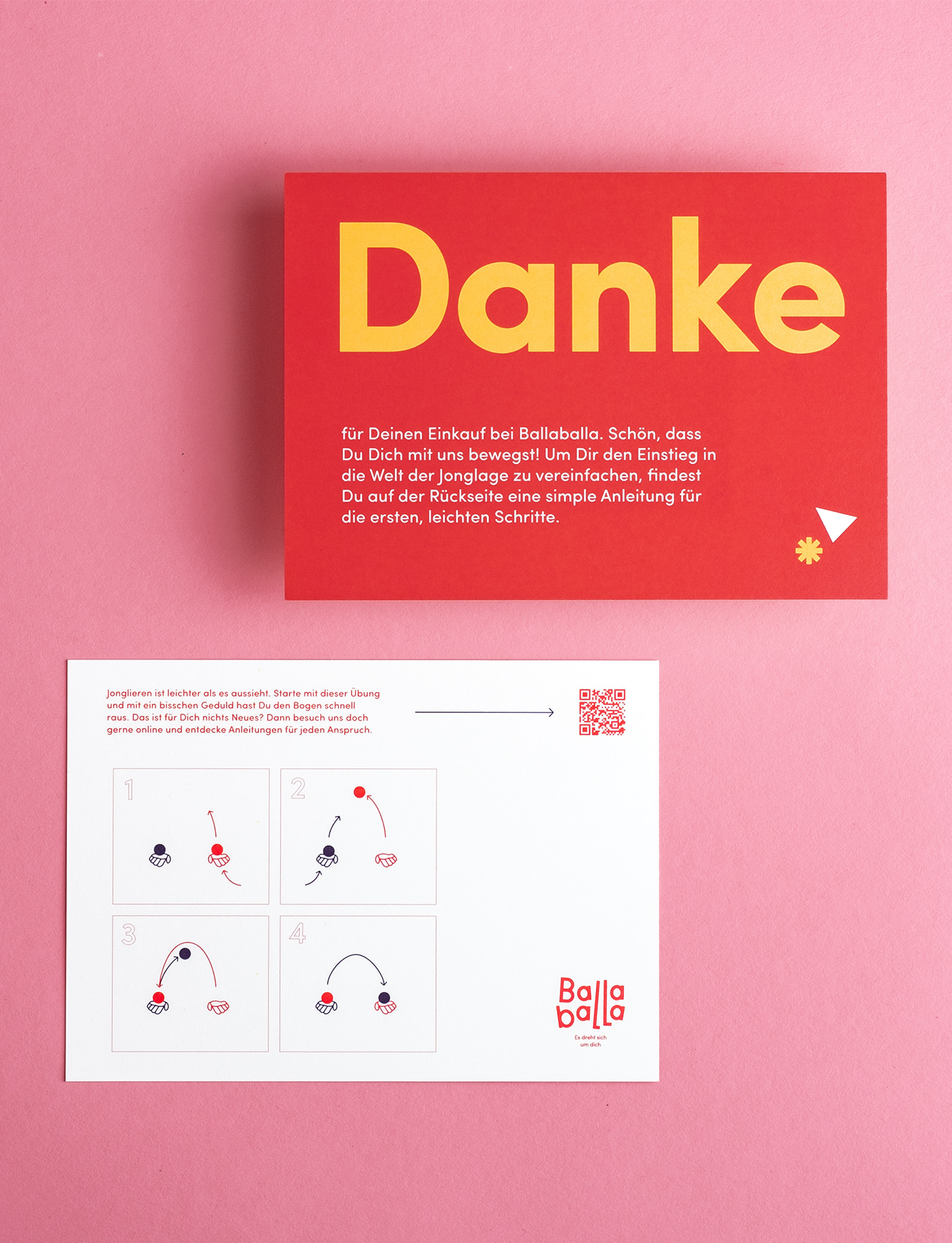 Wer Jonglierbälle, Diabolos und Stelzen sucht, findet: Ballaballa. Das Unternehmen hat uns beauftragt, die visuelle Identität seiner Marke neu zu denken – Spaß, Kreativität und Spielfreude sollten wir in ein modernes Erscheinungsbild überführen.