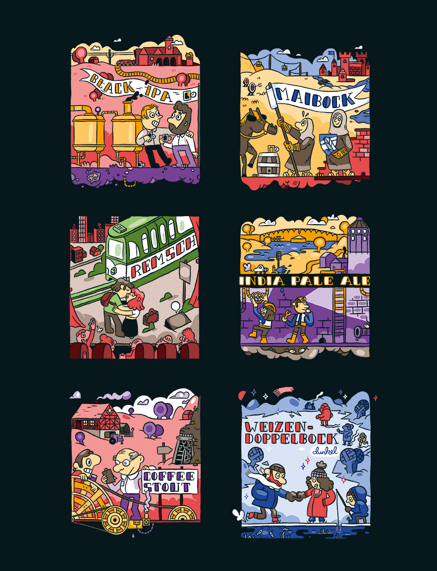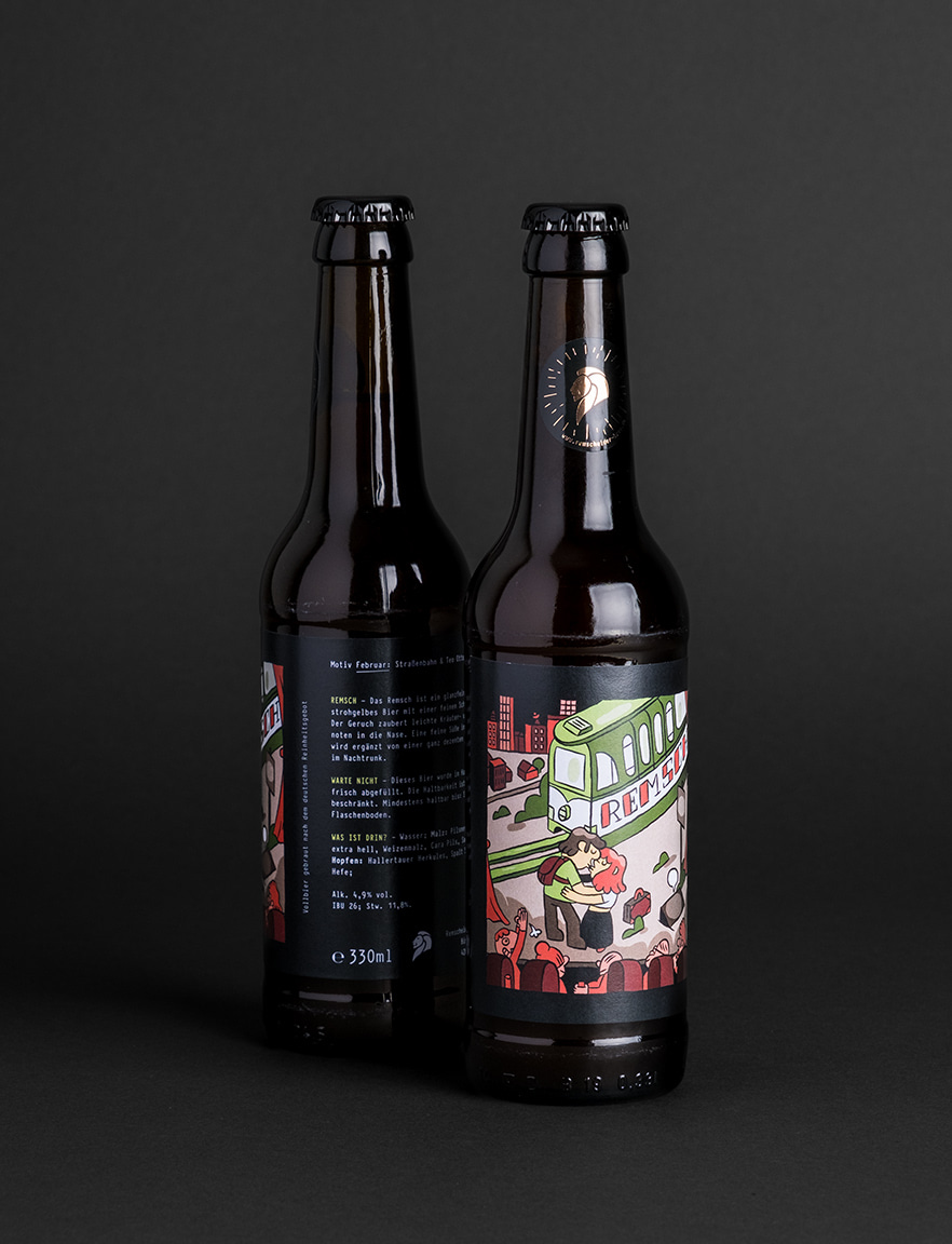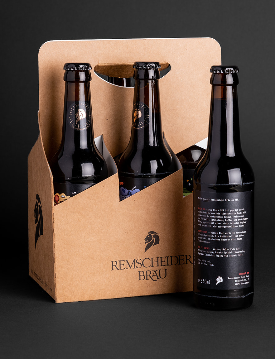 Die Jungs und Mädels vom Remscheider Bräu machen nicht nur leckeres Bier, sie haben auch gute Ideen – zum Beispiel, ein Jahr lang jeden Monat ein neues Bier zu kreieren. Uns haben sie beauftragt, die dazugehörige Etiketten-Serie zu entwickeln.