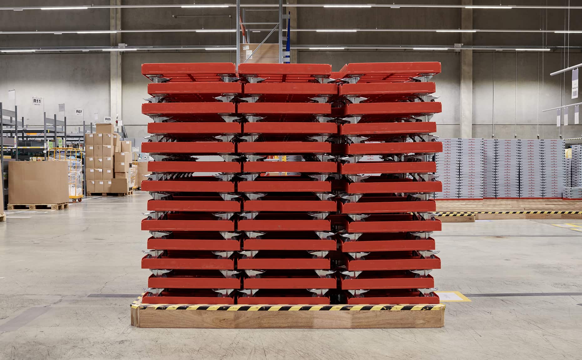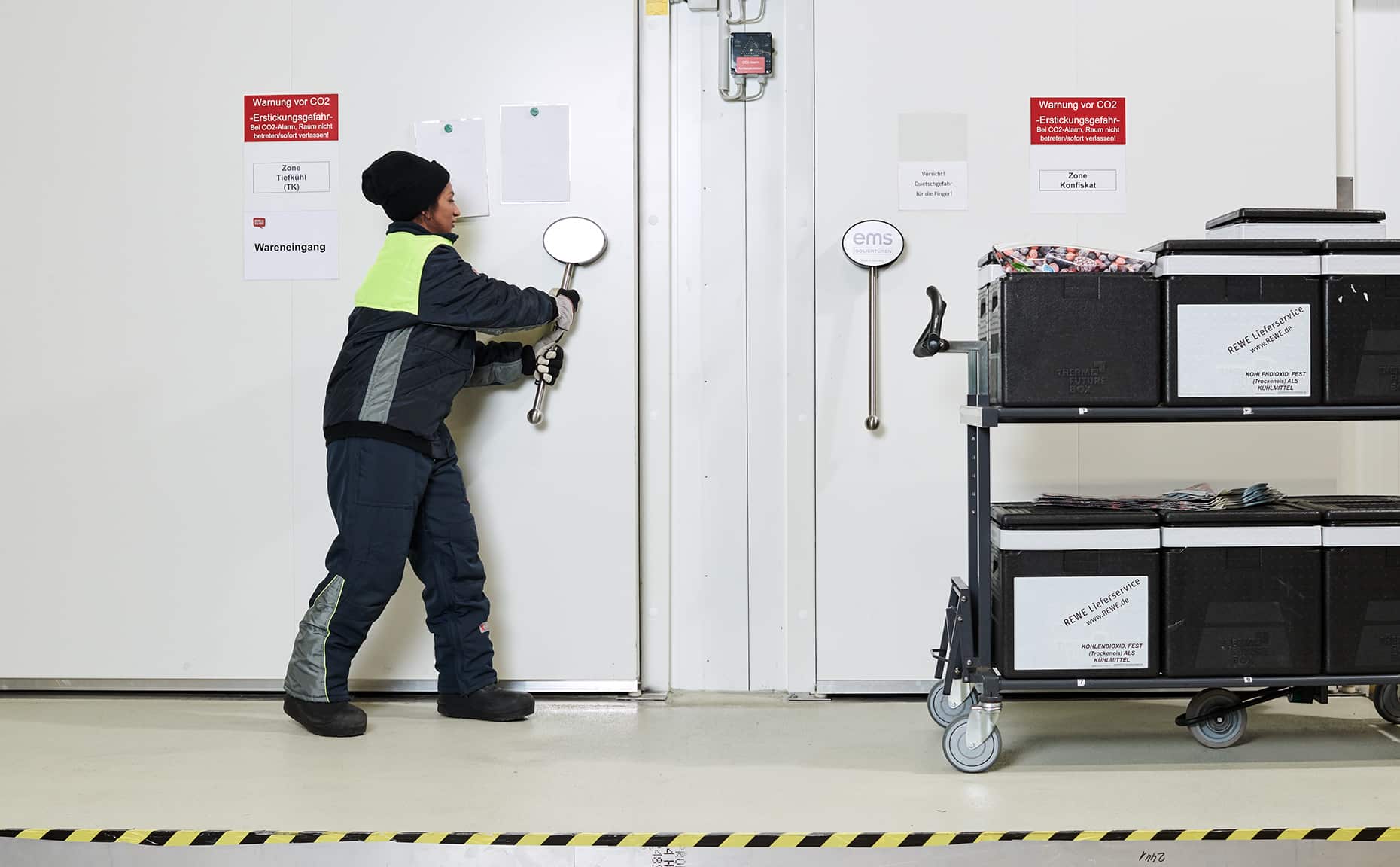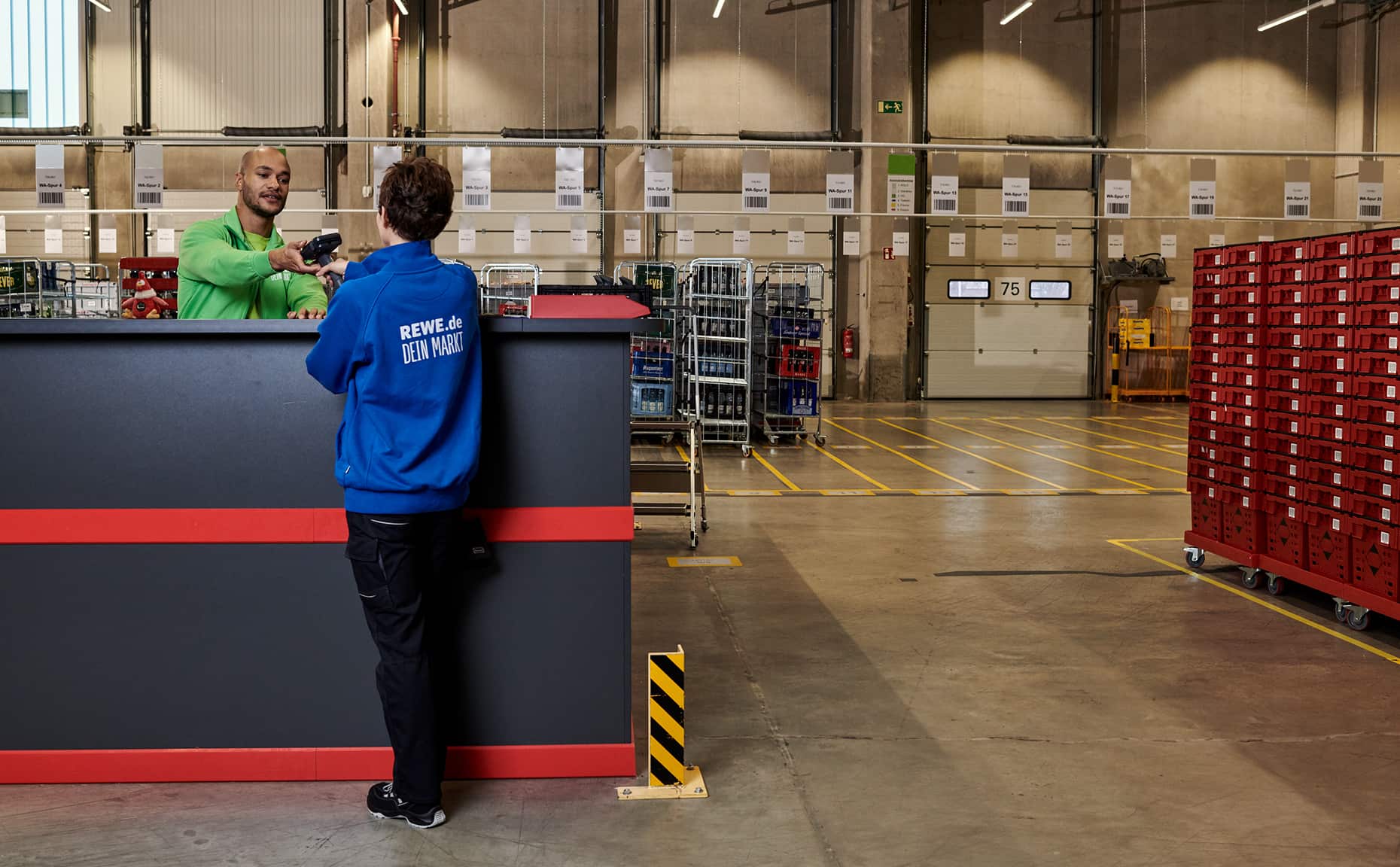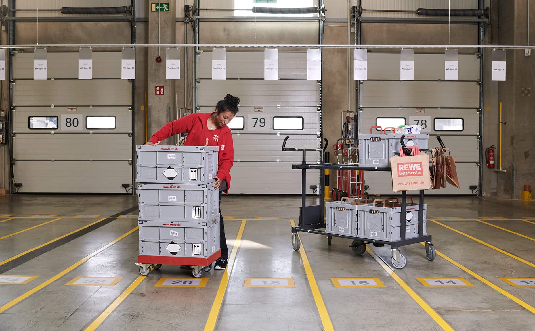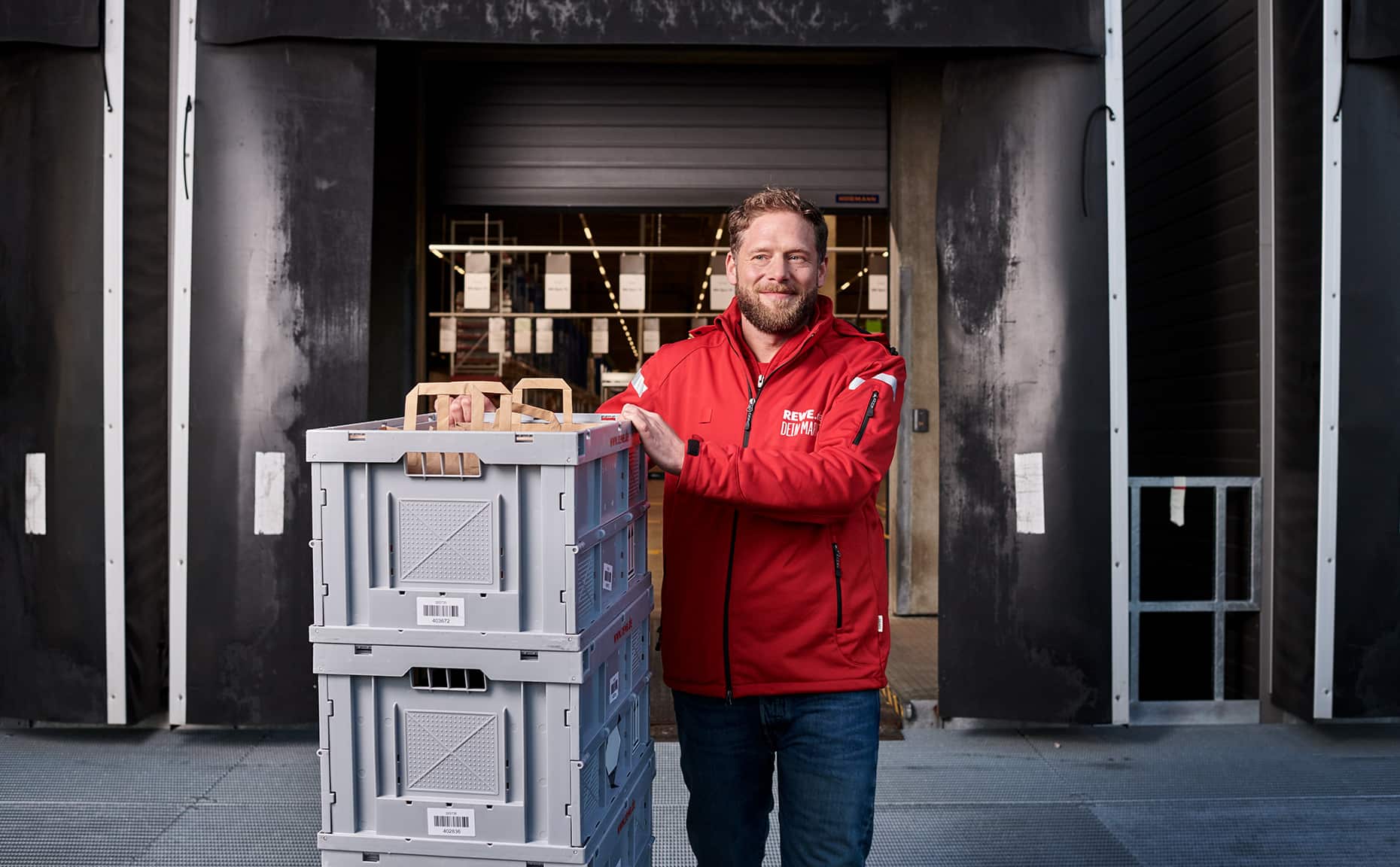 Mit der neuen Bildwelt wollten wir einen ehrlichen Eindruck davon vermitteln, wie es ist, beim REWE Lieferservice zu arbeiten. Dafür haben wir die Atmosphäre im Lager mit hoher Tiefenschärfe festgehalten, ohne vorher aufzuräumen, zu dekorieren oder die Bildausschnitte nachträglich zu verändern.