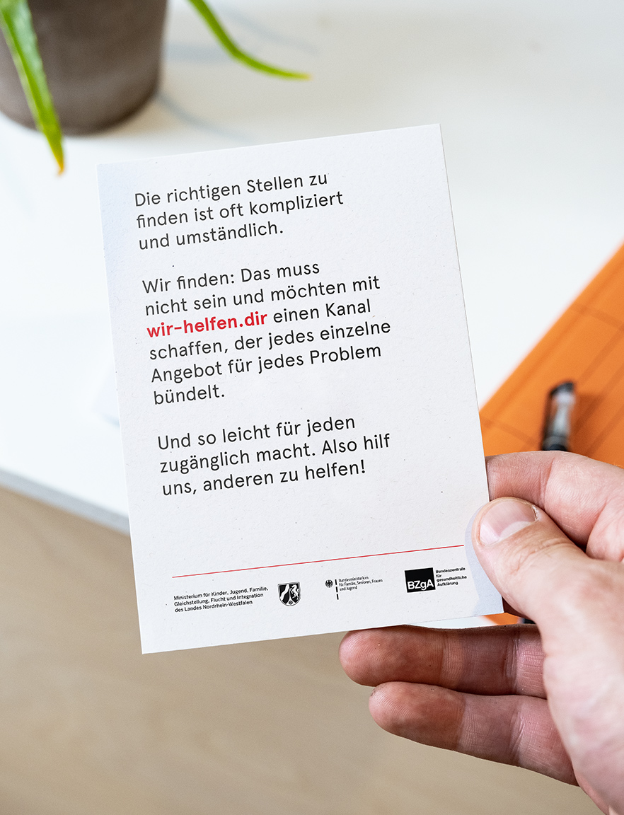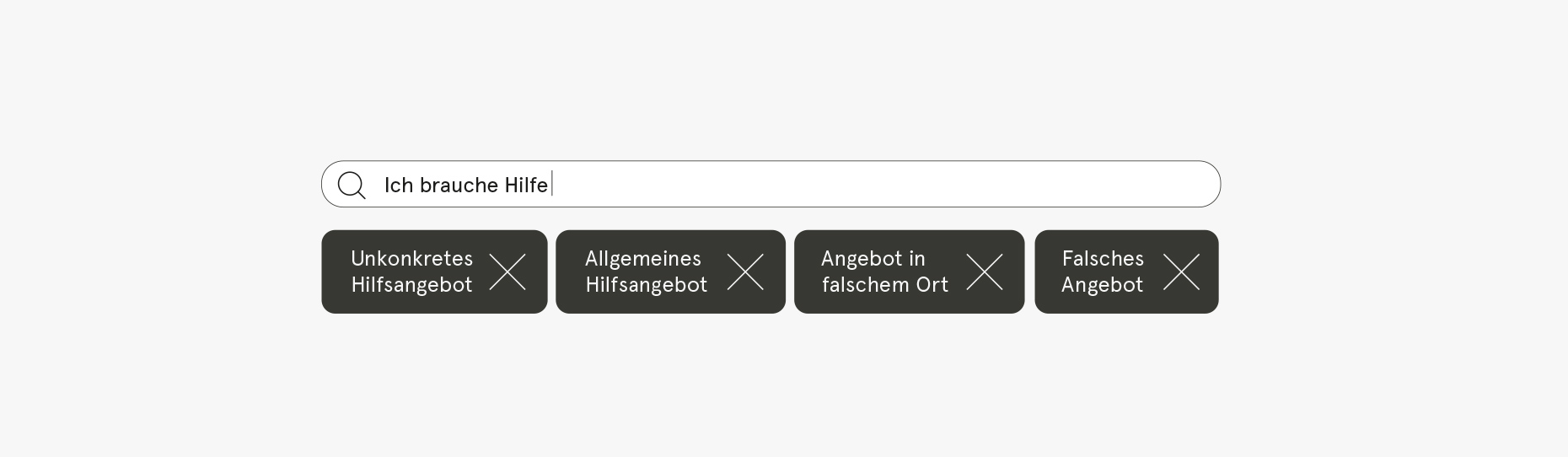 Und es braucht: diese zentrale Anlaufstelle. Denn aktuell sorgen die uneinheitlichen Auftritte der zahlreichen Hilfestellen vor allem für Verwirrung. Es braucht eine vertrauenswürdige Oberfläche, die themen- und ortsabhängig Hilfestellen sucht und auflistet. Wir nennen sie: den Hilfestellen-Finder.