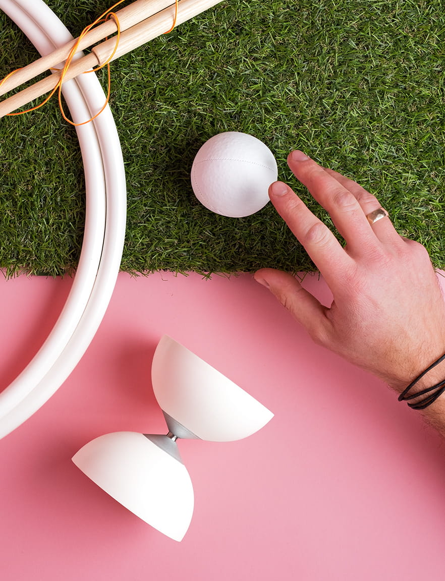 Wer Jonglierbälle, Diabolos und Stelzen sucht, findet: Ballaballa. Das Unternehmen hat uns beauftragt, die visuelle Identität seiner Marke neu zu denken – Spaß, Kreativität und Spielfreude sollten wir in ein modernes Erscheinungsbild überführen.