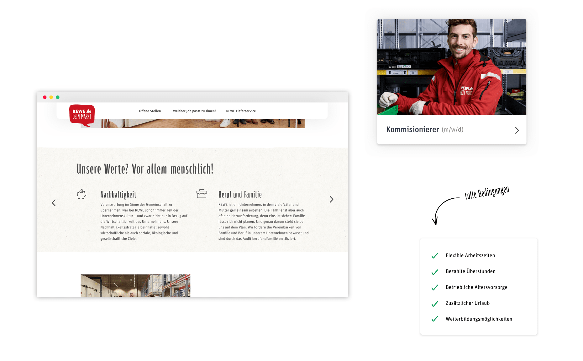 Der REWE Lieferservice sucht deutschlandweit neue Mitarbeiter. Um diese effektiv zu bewerben, haben wir die Arbeitgebermarke analysiert und neu durchdacht.